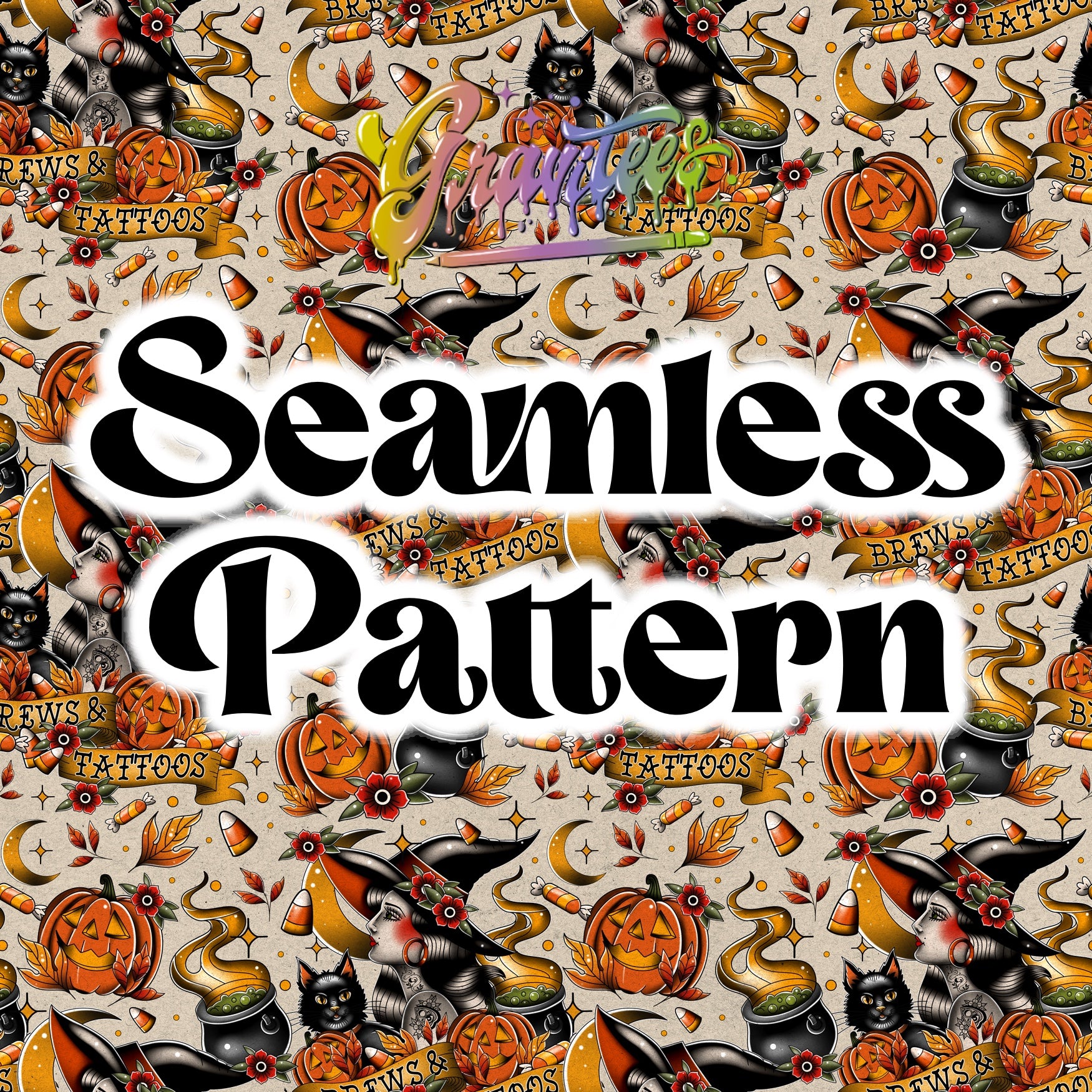 BREWS & TATTOOS WITCH Seamless Png ClipartBREWS & TATTOOS WITCH for DTF or Shirt Printing, PNG Only!