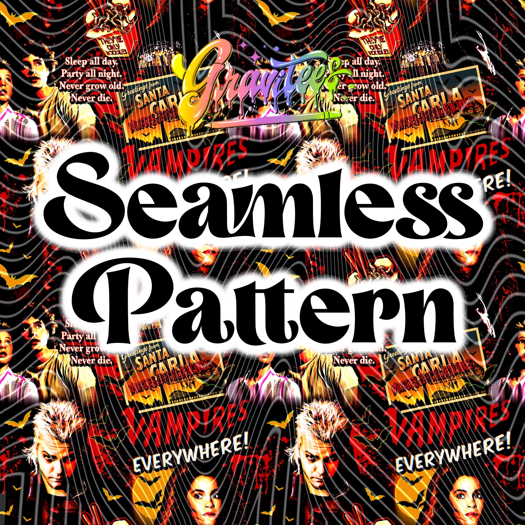 VAMPIRES EVERYWHERE Coordinating Seamless Design Png for DTF or Shirt Printing, PNG Only!